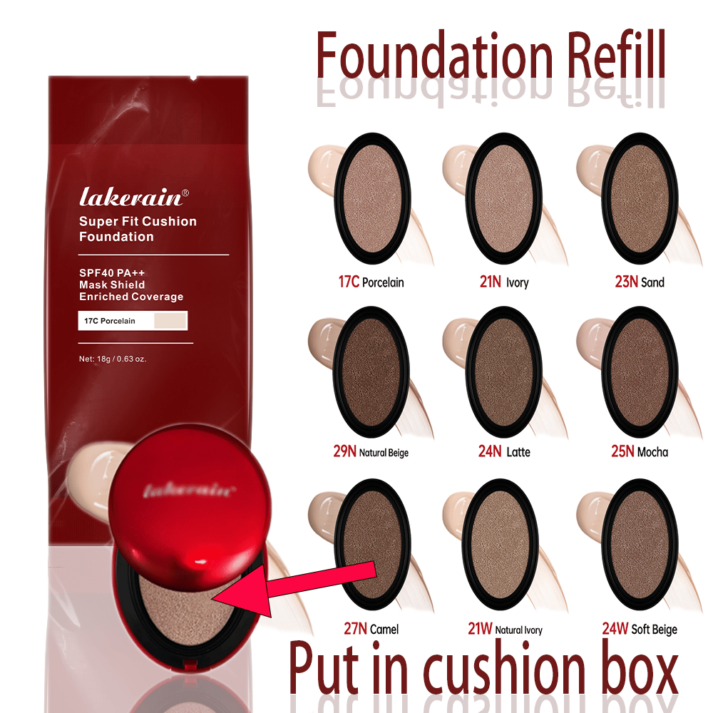 Cushion Refill Foundation Waterproof Semi-Matte Red Finish 72-Hour Wear Long-Lasting Buildable Cover